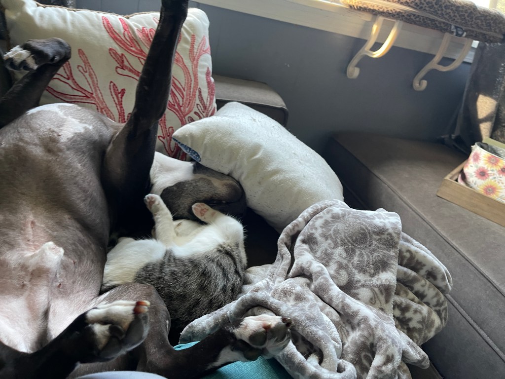 Porter lived a very stress-free life and truly became an amazing companion and ambassador for rescue pit bulls. He loved his kitty siblings, and will be deeply missed.